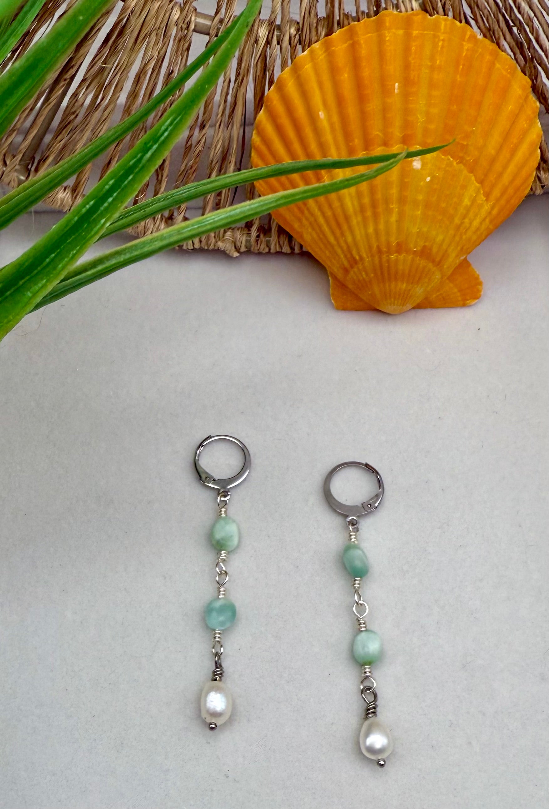 Aqua Pearl Drop Earrings